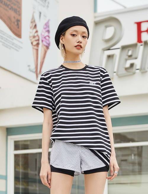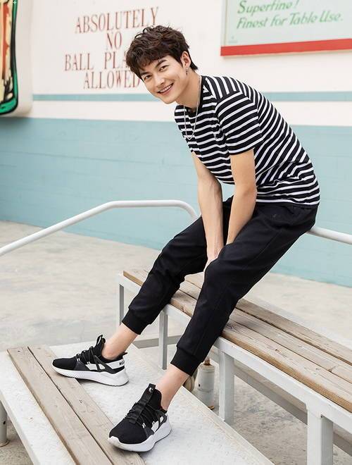 整體都選擇黑色,深色系太單調(diào)了,短袖T恤上加上白色,黑白;晟,在色彩上突出,經(jīng)典。九分褲露出腳踝,既清涼又潮流,鞋子黑白相間,呼應(yīng)T恤,整體搭配很經(jīng)典。