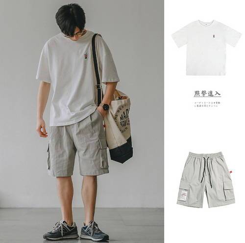 男士淺灰色工裝短褲如何搭配短袖T恤?
