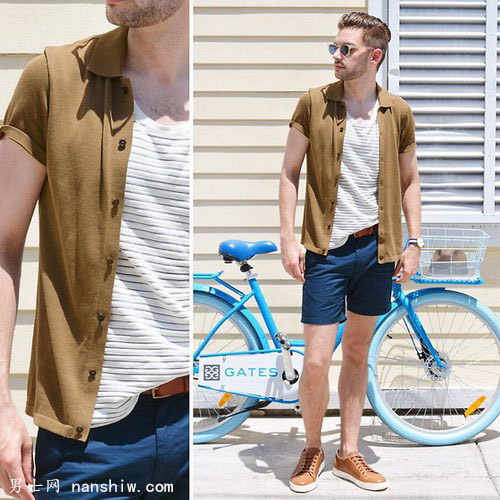 看完短袖我們來看看襯衫配短褲,用淺色襯衫搭配深色短褲,顯白!顯高!暖男!