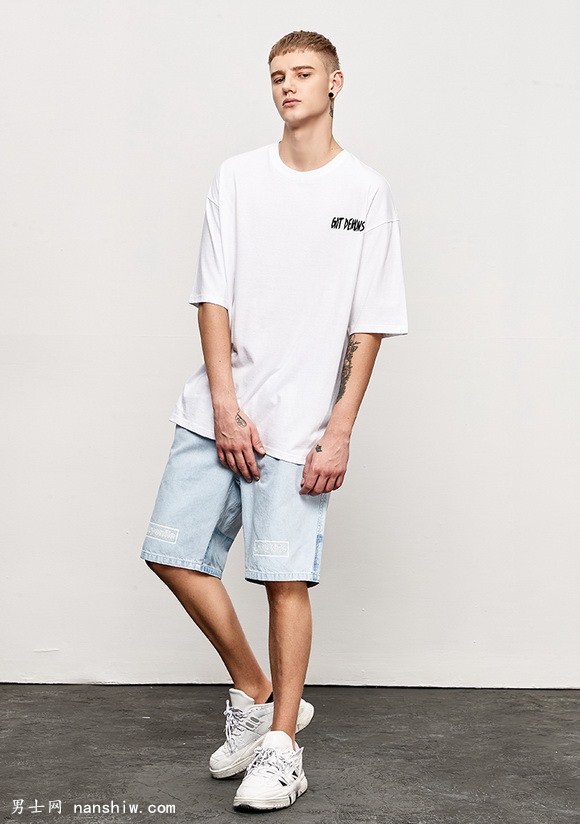 白色也是男人衣櫥中必不可少的單品,白色T血衫干凈百搭,顯得人更白凈。牛仔短褲,小白鞋是最適合不過(guò)的穿搭。青春氣息中透露著一種對(duì)生活的向往和熱愛(ài)。