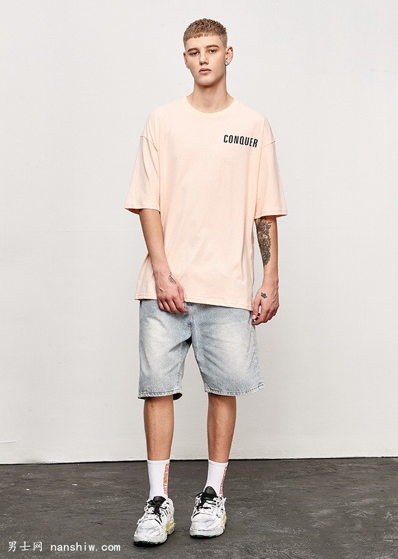 歐美潮牌寬松T血,粉色提升皮膚,看起來(lái)更白凈,搭牛仔褲,長(zhǎng)筒襪,老爹鞋,別具一格,個(gè)性獨(dú)特。這個(gè)夏季這樣搭,一周每天不重樣,潮男就是這樣打造出來(lái)的。