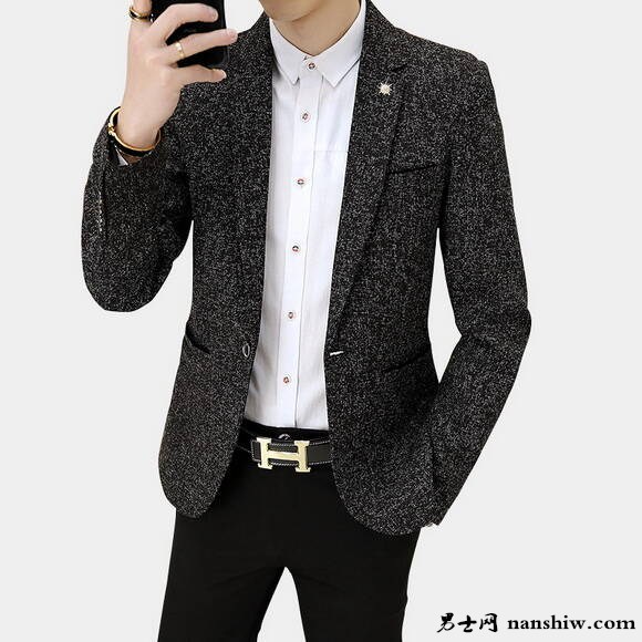 這款毛呢短款西裝修身上衣搭配休閑西褲非常帥氣,不管在哪個年齡段穿上這一套都會更有帥氣型男的氣質,而且保暖效果做的也很好,舒適又不失美觀。