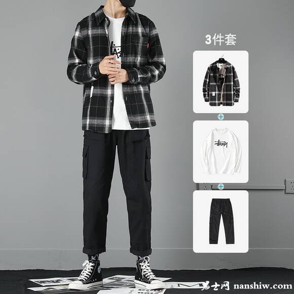 條紋格子襯衣在初春穿著很亮眼,既能彰顯個(gè)人的色彩,搭配長(zhǎng)袖T恤與工裝褲,腳上穿高幫板鞋很有特色,當(dāng)然在保暖的性能上也非常不錯(cuò),更具潮流風(fēng)范。