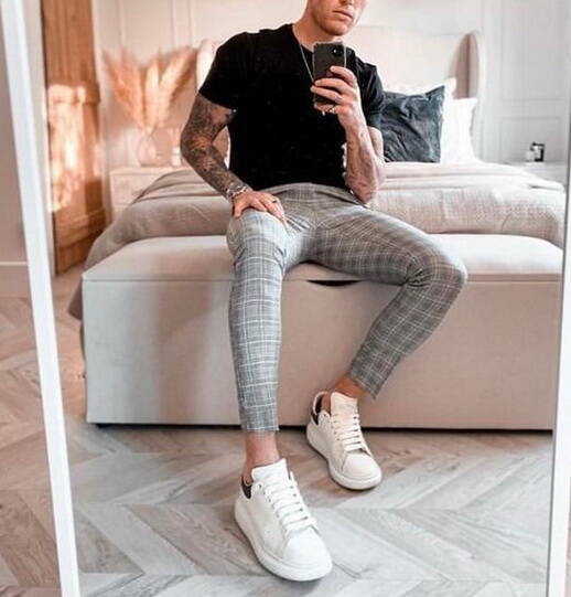 對(duì)于腿型缺陷較大的男士們來(lái)說(shuō),盡量避開(kāi)明亮度較高的灰色褲子款式,因?yàn)榱炼冗^(guò)高的款式搭配起來(lái)會(huì)更容易吸睛,腿型的缺陷也更容易暴露。