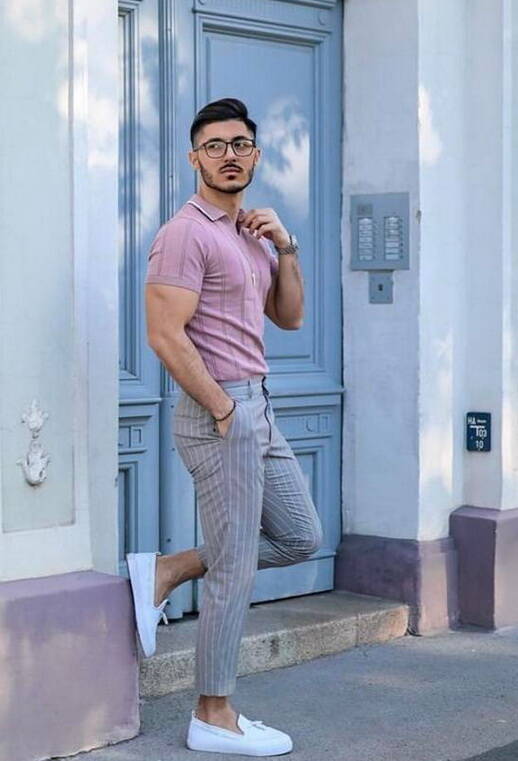 除了黑白色之外,還可以結(jié)合有彩色的上衣單品來(lái)搭配,比如淺淡一點(diǎn)的莫蘭迪粉色系列同樣可以選擇,與真正的灰色搭配起來(lái)能夠呈現(xiàn)出典雅溫和的搭配感受,讓陽(yáng)剛的外表多出些許的紳士柔情味道,同樣是不錯(cuò)的搭配選擇。