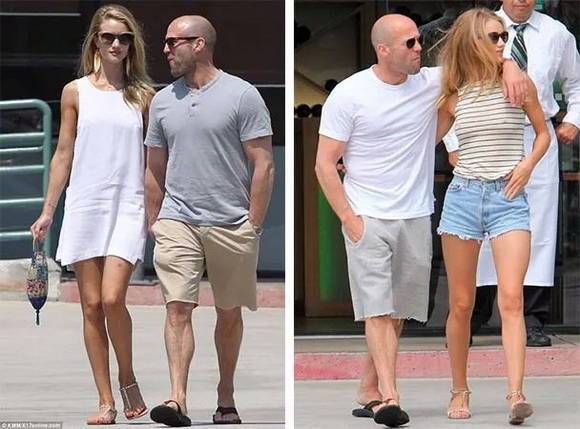 同樣走在超模妻子蘿西·杭亭頓-懷特莉旁邊,左邊的杰森史塔森明顯選了比較適合的短褲,修飾了身材比例,也讓自己看起來更加利落有型。