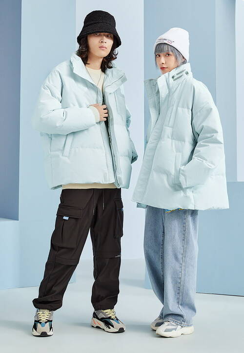 這情侶羽絨服真是多啊,這款羽絨服可能穿上去你會(huì)覺(jué)得臃腫,其實(shí)設(shè)計(jì)的非常好,一點(diǎn)也不會(huì)顯得臃腫難看,而還挺括有型,立領(lǐng)設(shè)計(jì),加上了一些圖案元素,讓這個(gè)立領(lǐng)很個(gè)性。男生淺灰色羽絨服+乳白色圓領(lǐng)毛衣+黑色工裝褲+拼色老爹鞋+黑色漁夫帽,褲子也可以和時(shí)裝發(fā)布會(huì)一樣穿牛仔褲。女生淺灰色羽絨服+白色印花衛(wèi)衣+寬松印花牛仔褲+白色老爹鞋+白色印花針織帽。帥就要一起來(lái)。