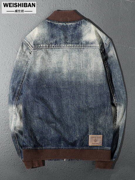 春秋季復(fù)古牛仔外套,藍(lán)色棒球領(lǐng)機(jī)車夾克