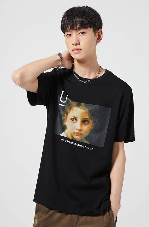 太平鳥男裝 復(fù)古印花短袖T恤2色,76.94元包郵2020-06-03