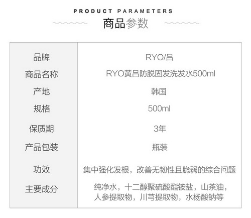 韓國進(jìn)口RYO呂黃呂防脫固發(fā)滋養(yǎng)洗發(fā)水500ml×2件,48.14元包郵2020-06-20