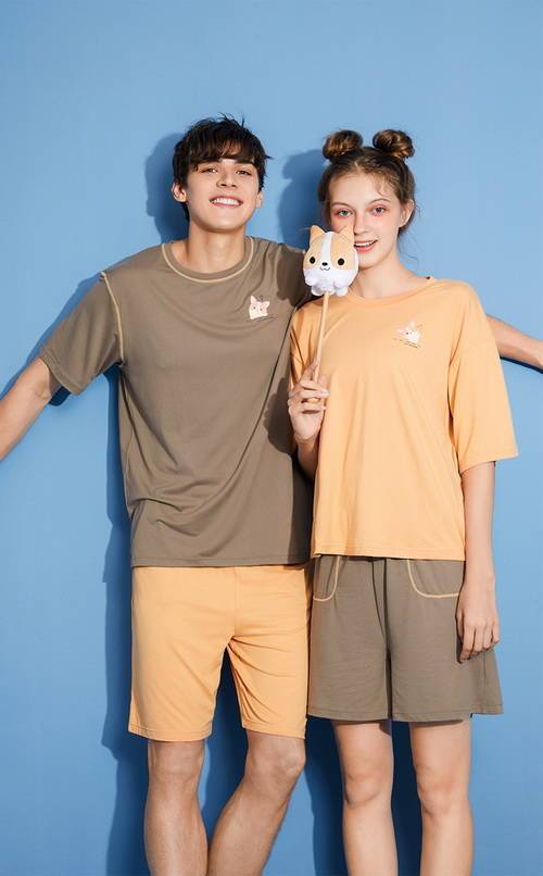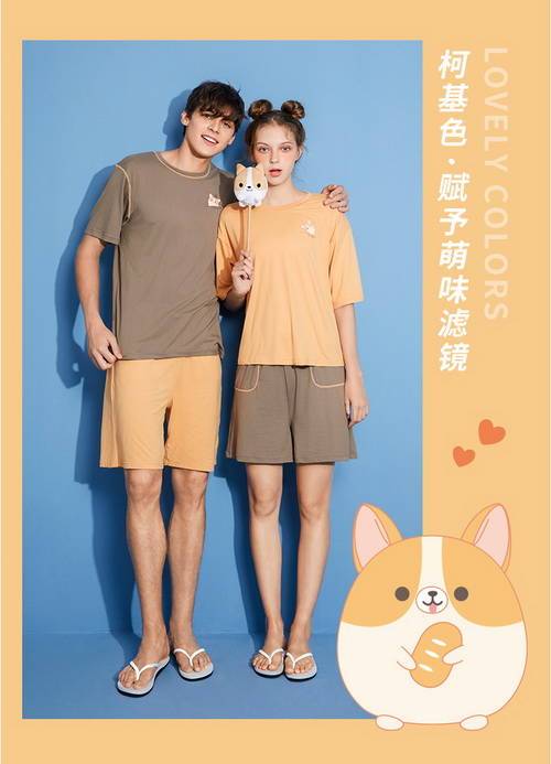 大樸家居服卡通柯基系列薄款情侶短袖套裝,券后114.92元/件包郵2020-06-22