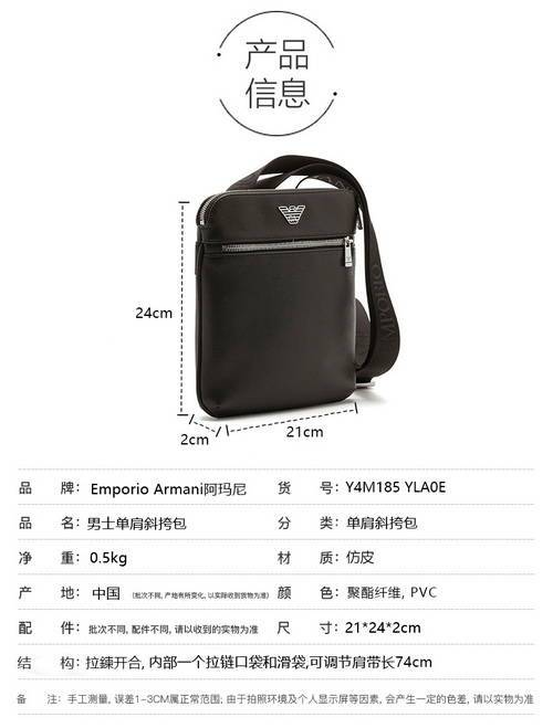 EmporioArmani阿瑪尼EA單肩斜挎拉鏈包,券后334元包郵2020-06-29