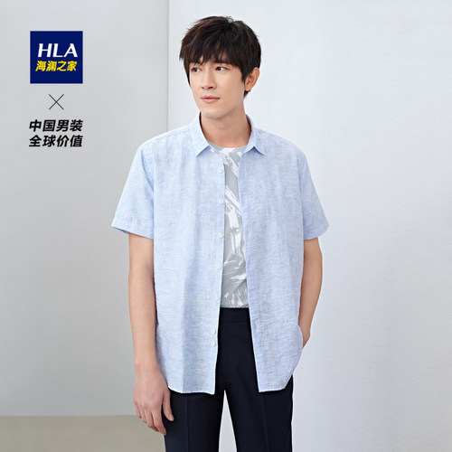 1、HLA海瀾之家白格紋亞麻布短袖襯衫,券后49元包郵