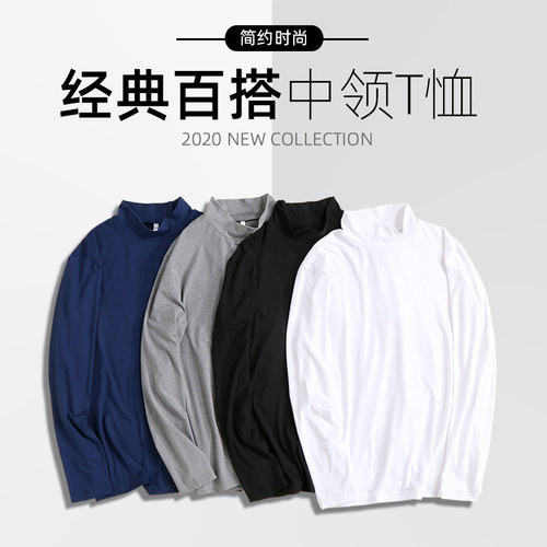 男士半高領打底長袖T恤多色,券后9.9包郵起2020-10-28