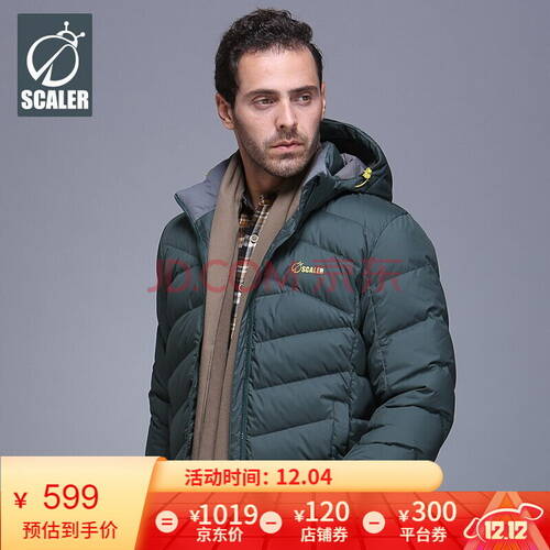 4號:思凱樂SCALER戶外冬季連帽鵝絨羽絨服情侶款,券后599包郵2020-12-03