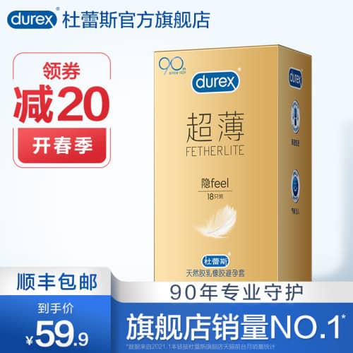 【tm】杜蕾斯煥金超薄避孕套18只,券后39.9順豐包郵2021-02-23