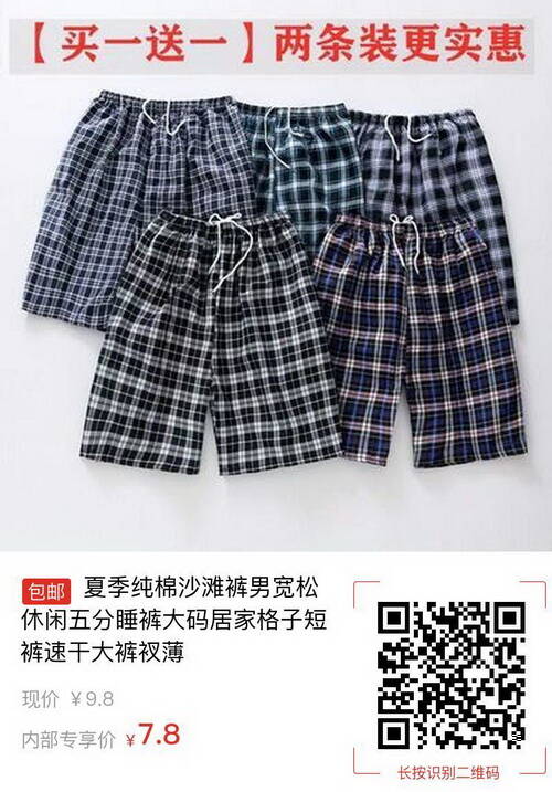 【pdd】船王褲業(yè)格子沙灘褲10款,券+好評后5.8包郵2021-03-11