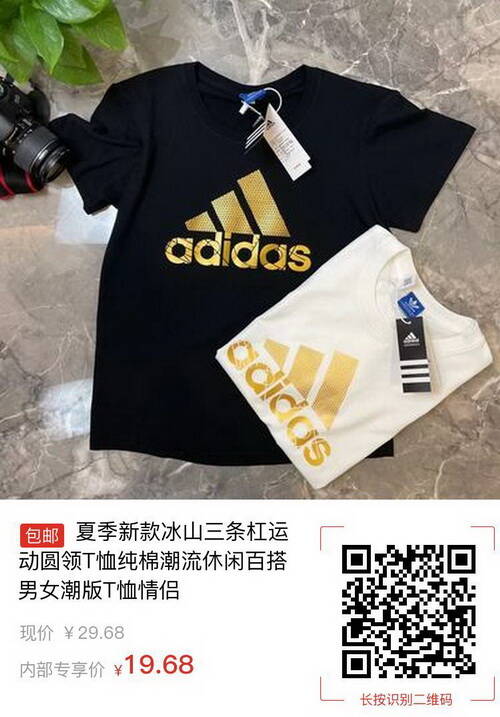 【pdd】海洋服裝廠冰山三條杠情侶短袖T恤黑白2款,券后19.68包郵2021-04-01