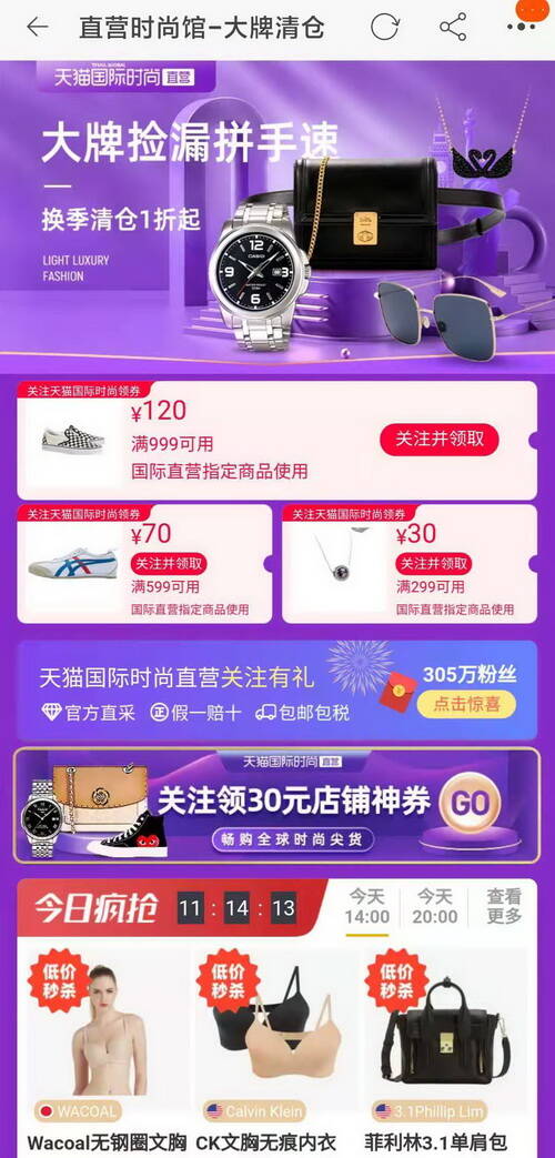 【tm活動】天貓國際直營時尚館:大牌清倉,搶1件5折,優(yōu)惠券多多2021-04-26