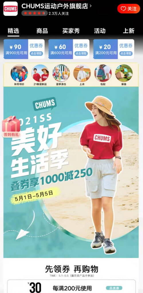 【jd活動】CHUMS運動戶外旗艦店,51促銷:疊券享1000減2502021-04-30